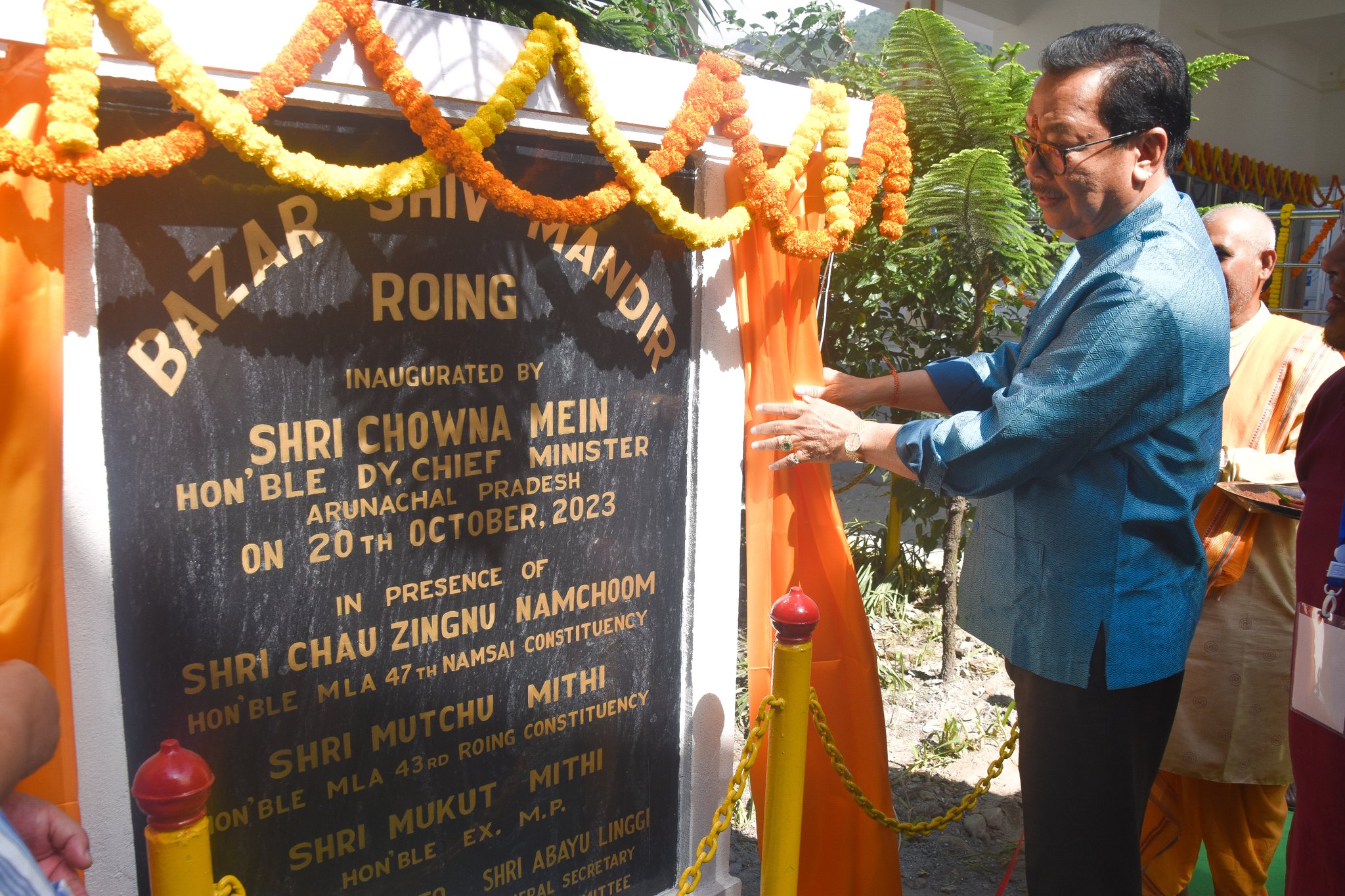 Roing: Deputy Chief Minister, Chowna Mein, in the presence of former chief minister Mukut Mithi, MLAs Mutchu Mithi and Zingnu Namchoom inaugurated the newly consecrated Bazar Shiv Mandir here on Friday.