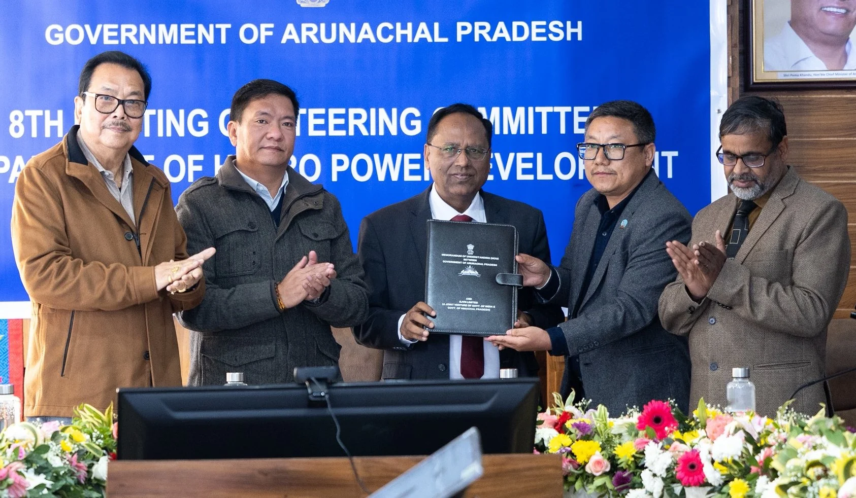 The event was attended by Deputy Chief Minister Chowna Mein, Chief Secretary Manish Gupta, Commissioner (Power) Sonam Chombay, Advisor to the Government H K Paliwal, Secretary (Land Management) A K Singh, and SJVN CMD Raj Kumar Chaudhary.