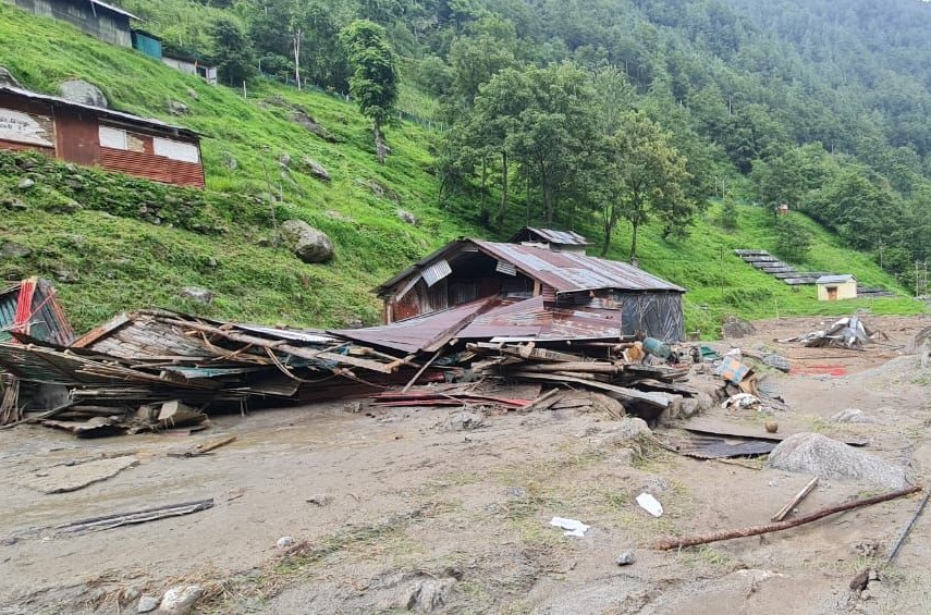 Among the affected structures, kutcha houses were swept away, and some houses in Rajapa Colony, near Yeshi Garage in Dirang, suffered partial damage.